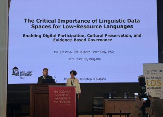 Институт GATE взе участие в семинар, посветен на развитието на Европейското езиково пространство от данни (European Linguistic Data Space), съорганизирано от Института за български език към Българската академия на науките и Европейското езиково пространство от данни. Събитието събра представители на академичните среди, публичната администрация и индустрията за обсъждане на бъдещето на езиковите технологии в България.
