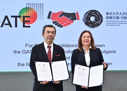 Ден преди старта на международния форум UpToGATE 2025: New Horizons институт GATE към СУ „Св. Климент Охридски“ подписа Меморандум за сътрудничество (MoU) с Института за инфраструктурни приложения на повсеместните изчисления (Institute of Infrastructure Application of Ubiquitous Computing, Interfaculty Initiative in Information Studies) към Токийския университет – една от най-престижните изследователски институции в света. На събитието присъстваха зам. ректорът на СУ „Св. Климент Охридски“ проф. Ренета Божанкова, н. пр. Мариета Арабаджиева – посланик на България в Япония, представители на Японското посолство у нас.