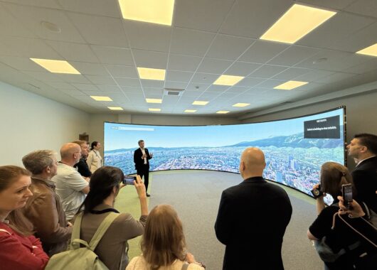 The demonstration session provided participants with the opportunity to see GATE’s technologies in action. In the Visualization Lab, an interactive 3D city model was presented, enabling the simulation of various urban scenarios—from traffic and air pollution to energy efficiency. Delegates also observed a demonstration of a data space for positive energy districts (DS4PED), as well as a projection mapping of a physical city model, visualising the impact of different policy decisions in a real-world environment.
